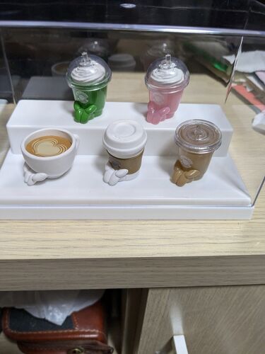 明けてましたね 今年もよろしくお願いします 久々に好みのガチャガチャを見つけました 白のコーヒーカップが欲しくて始めたのですが 奇跡的に1発目でコーヒーカップが出たので調子に乗って3回まわし、被らなかった戦利品を持って気分良く帰宅 アイスドリンク…